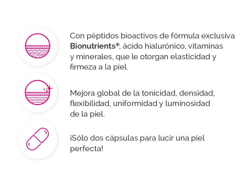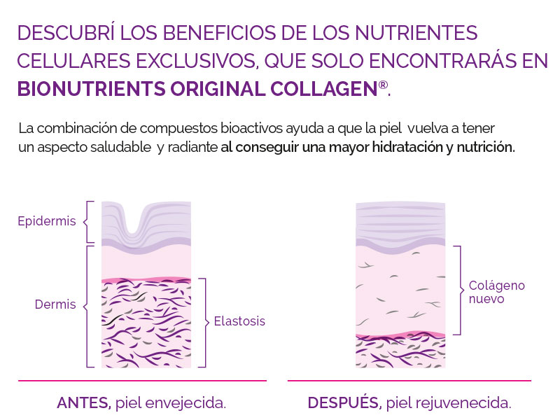 Bionutrients Original Collagen ® es firmeza y contribuye a la lucha contra los signos visibles de la edad, brindándote un rostro lleno de vitalidad y juventud.